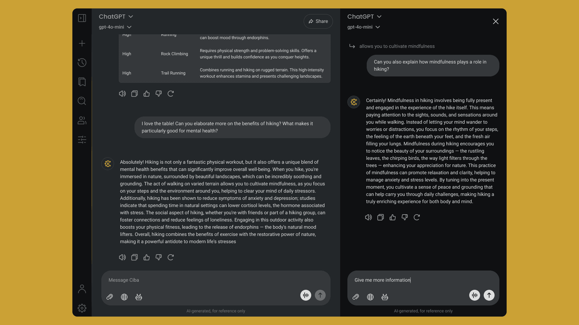 My goal with Ciba was to design a conversational AI that feels human, structured, and respectful of users’ thinking flow.